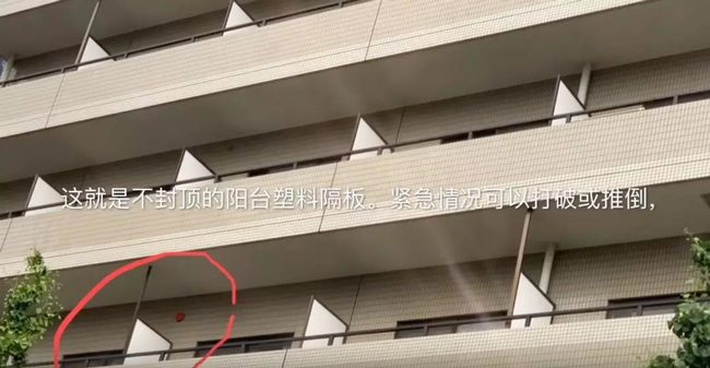 日本居民樓的陽(yáng)臺(tái),鄰里之間會(huì)有一個(gè)區(qū)域是用一層較薄的塑料板隔著的。