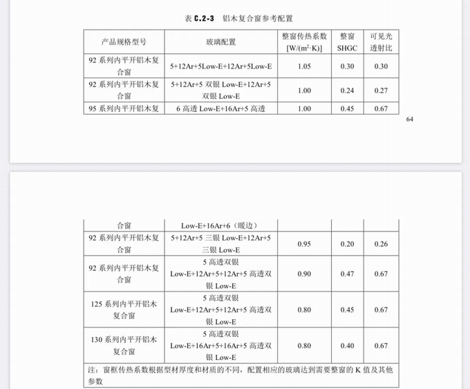 表 C.2-3 鋁木復合窗參考配置