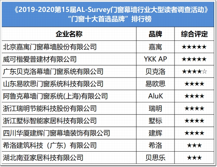 打造全產業鏈體系,為高質量發展賦能!堅持綠色環保、可持續發展,堅持工匠精神,遴選出最優秀的行業品牌企業,成就行業真正的“TOP10”,堅持走品牌化之路的企業,由中國建筑金屬結構協會主辦,中國幕墻網承辦的“2019-2020年度第十五屆AL-Survey(詞條“AL-Survey”由行業大百科提供)門窗幕墻行業年度大型讀者調查暨‘我最喜愛幕墻工程’評選活動”(以下簡稱“AL-Survey”)為您推送!于2020年8月12日,在廣州南豐國際會展中心3樓大宴會廳隆重舉行了頒獎儀式。