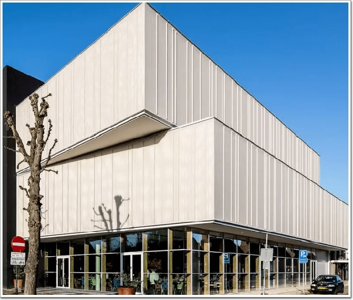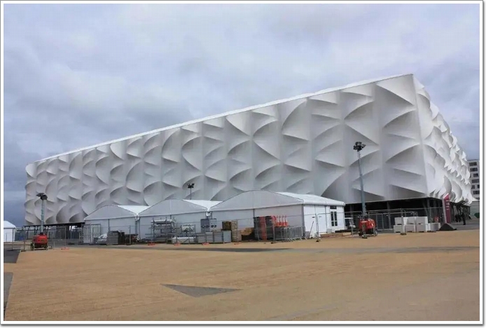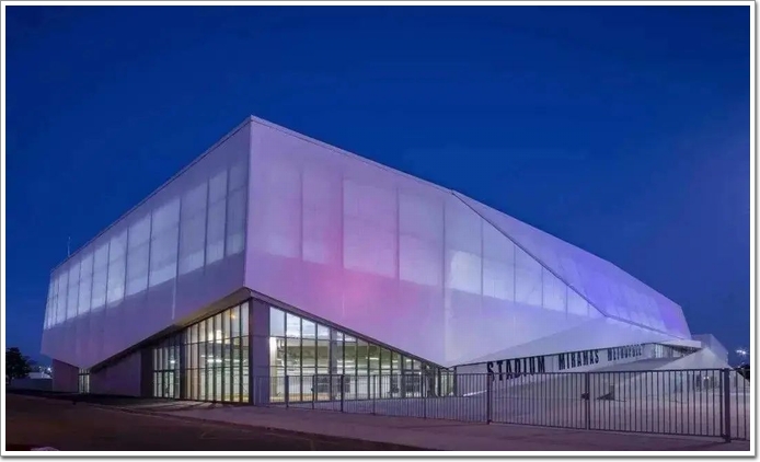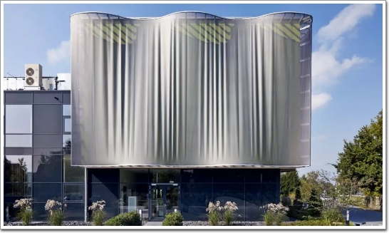這種材料能讓體量較大的建筑呈現輕盈而通透的視覺感,分為金屬織物幕墻和柔性材料的非金屬織物幕墻。