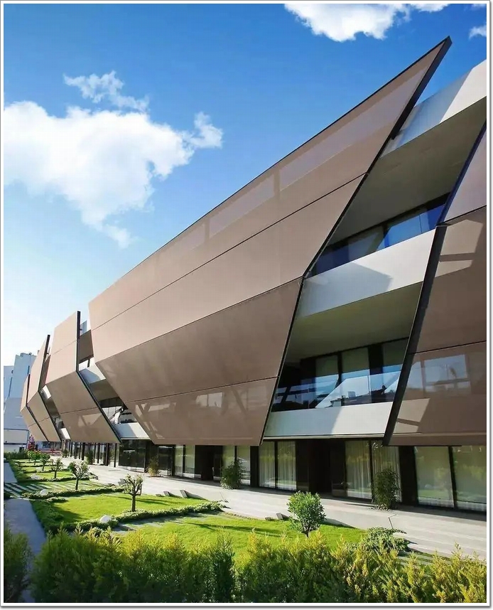 • 外形:利用材料的柔軟和彈性,3維空間發展,建筑的外形呈現多樣性,特別是各種建筑曲面是其他建筑材料(詞條“建筑材料”由行業大百科提供)無法實現或者很難實現的。