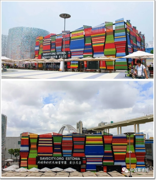 五彩繽紛的愛沙尼亞館在膜材的基礎上做了噴繪,在以灰色為主調的會場里,色彩斑斕的外墻十分耀眼,彰顯了愛沙尼亞在綠色環保方面的獨特理念。