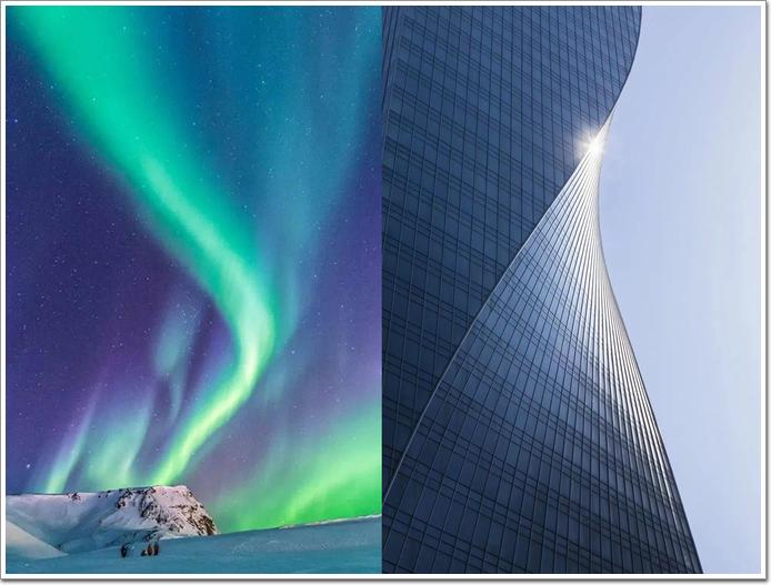 極致造詣 極致之美 極致之光︱重慶高科太陽座以“極光”為設計理念,從白天到黑夜,不同的條件下,外立面“扭動”的幕墻能夠呈現不同“光之舞”。建筑輪廓以最大8.8度/層的扭擰新紀錄、極具活力和辨識度的設計特色,成為重慶“兩江新區”的絕對地標、網紅打卡地,為城市公共空間之美增“光”添彩。