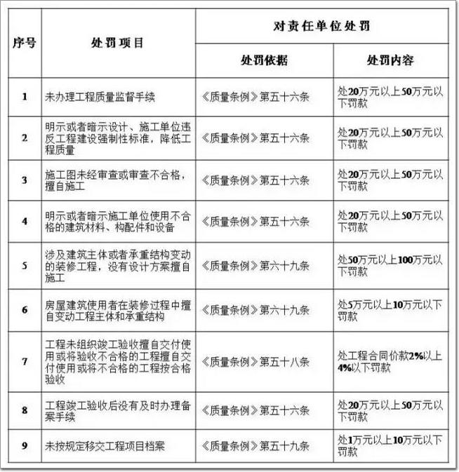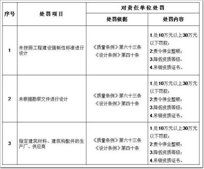 處罰依據:《建設工程質量管理條例》、《建設工程勘察設計管理條例》,細則內容摘錄自住建部文件附件。
