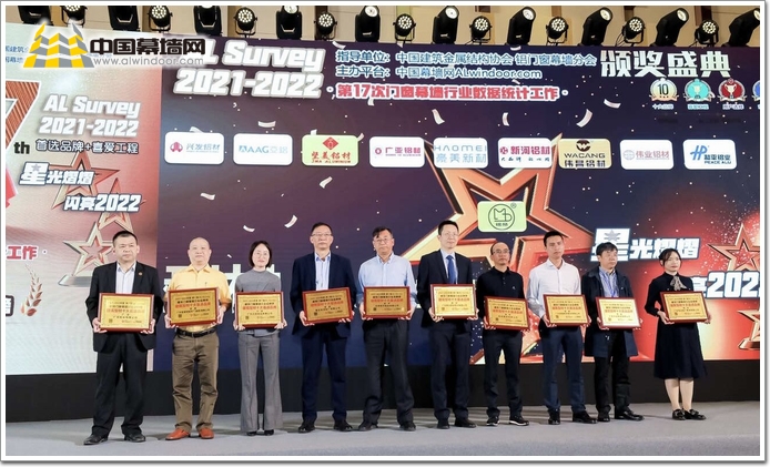 新流量下的TOP10|2022年3月10日,在廣州南豐國際會展中心3樓大宴會廳,“2021-2022年度第十七屆AL-Survey門窗幕墻行業(yè)年度大型讀者調(diào)查暨‘我最喜愛幕墻工程’評選活動”頒獎儀式隆重舉行。豪美新材憑借創(chuàng)新力、創(chuàng)造力、市場數(shù)據(jù)、發(fā)展?jié)摿Φ染C合評定,榮獲“中國門窗幕墻行業(yè)首選品牌獎”。