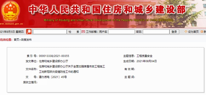 住建部《關(guān)于全面加強(qiáng)房屋市政工程施工工地新冠肺炎疫情防控工作的通知》