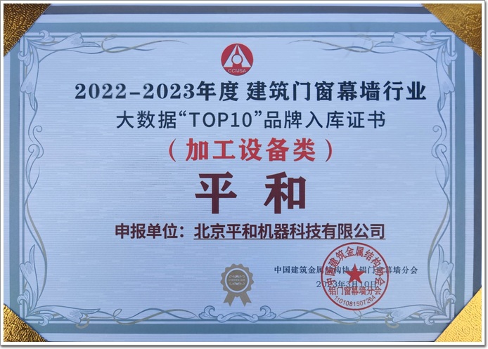 “加工設備智能先鋒”北京平和機器科技有限公司憑借全面的智能產品、科技生產線,門窗、幕墻創新技術,最終贏得廣大終端客戶、行業專家、設計院、顧問公司和媒體總編的高度認可,成功衛冕“加工設備首選品牌”大獎!