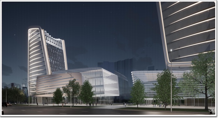 其中二號(hào)主樓高204米,設(shè)計(jì)為矩形鋼管混凝土框架(詞條“框架”由行業(yè)大百科提供)+鋼筋混凝土核心筒結(jié)構(gòu),幕墻體系采用玻璃、鋁板、格柵等結(jié)合的方式展示外立面效果。最終建設(shè)出一棟集商業(yè)、辦公、會(huì)務(wù)為一體的綜合型樓宇。