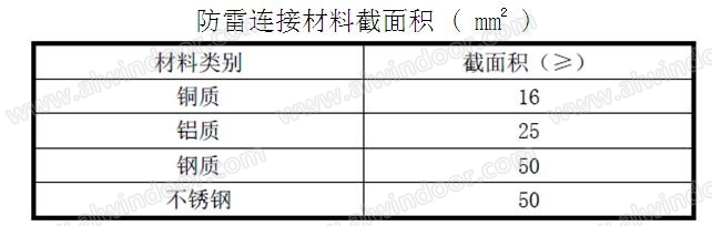 7. 幕墻立柱在套芯連接部位、幕墻與主體結構之間,應按防雷連接材料截面的規定連接。詳見下表