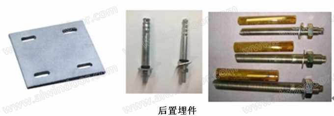 本工程幕墻選用平板預埋件,平板埋件為300x250x12mm鋼板,錨筋為φ12mm鋼筋。部分漏埋,錯埋的埋件采用后置埋件,埋板為300x250x12mm鋼板,表面熱侵鍍鋅,全部擴底錨栓固定。