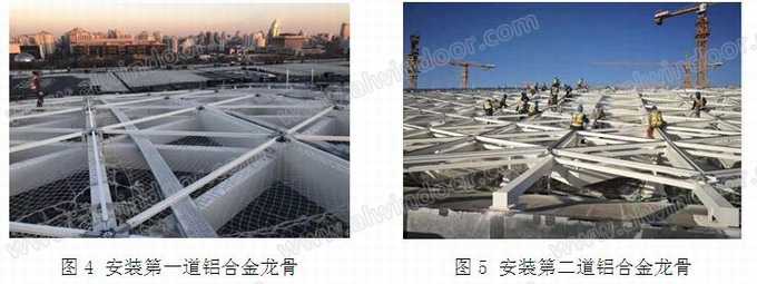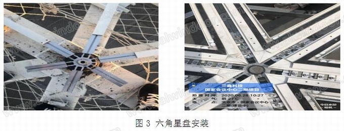 安裝六角星盤,與鋁合金一道、二道龍骨相連接,如圖3。