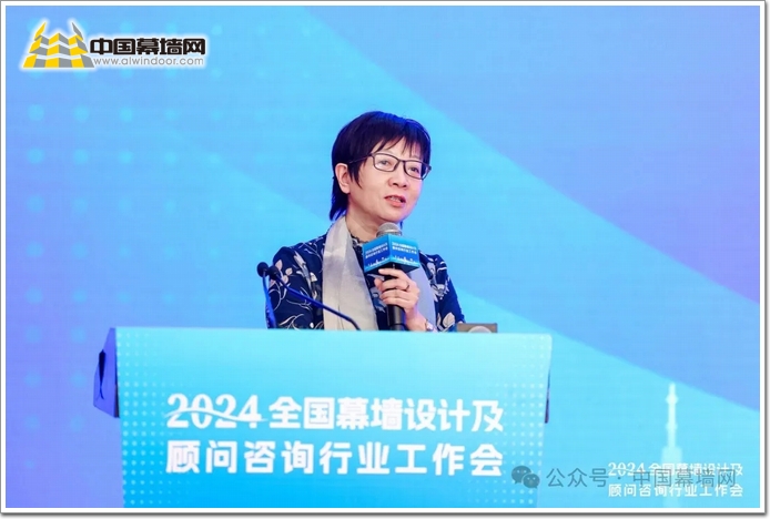 在王會長的工作報告中,全面的介紹了目前行業的發展現狀,并將走訪調研工作及數據分析工作的結果進行了簡要介紹,她指出幕墻設計及顧問咨詢行業是一個較為細分的領域,為房地產業與建筑業發展提供了強大的助力,是實現綠色低碳、高質量發展、培育新質生產力的又一“新搖籃”。