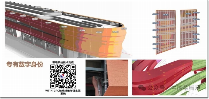 在項(xiàng)目的外立面系統(tǒng)中,大量采用超大異型雙曲面造型UHPC與GRC板,整體面積約1.7萬(wàn)方。相對(duì)于傳統(tǒng)的平板和單曲板,這類材料的“雙曲板”具有加工難度大、加工成本高、施工安裝難度大等特點(diǎn)。