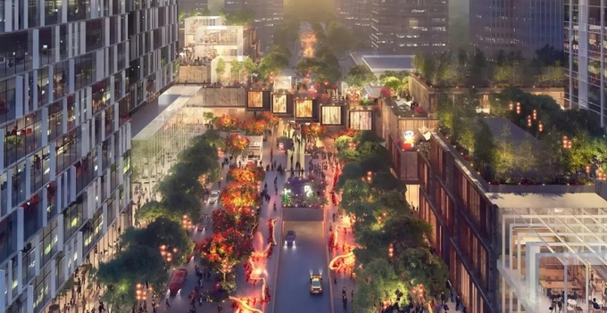 設(shè)計還將成都服務(wù)“一帶一路”建設(shè)的理念融入塔樓,垂直公園的設(shè)計如飄帶纏繞上升,寓意打造新的增長極;在商業(yè)業(yè)態(tài)謀劃上,融入“成都故事”,充分融合國際時尚魅力和天府文化特色,將成都人生活習(xí)性融入街區(qū),打造富有地域特色和煙火氣息的空間。