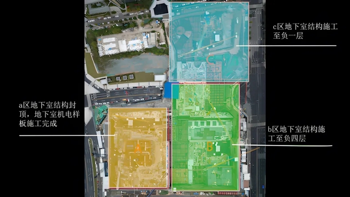 到2023年12月,項目塔樓結(jié)構(gòu)施工至一層,a區(qū)地下室結(jié)構(gòu)封頂,b區(qū)地下室結(jié)構(gòu)施工至負(fù)四層,c區(qū)地下室結(jié)構(gòu)施工至負(fù)一層。工程建設(shè)如火如荼,穩(wěn)步前進(jìn)。