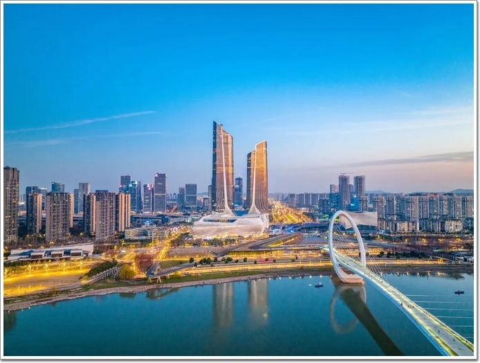 浙江財富金融中心位于杭州錢江新城CBD,由東西兩棟超高層建筑組成,是集甲級智能辦公和商業于一體的綜合大樓。兩棟建筑以獨特的圓柱形狀及傾斜屋頂設計,成為杭州市區一道亮麗的風景線。大樓外立面以玻璃和銀灰色板條為主,并采用了獨特的裝飾性肋條,這種設計不僅增添了建筑的美觀性,也賦予了塔樓弧形表面豐富的結構感。