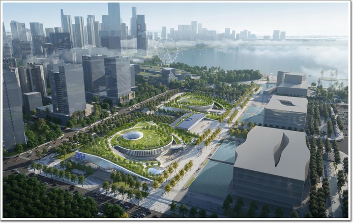 深圳書城灣區(qū)城,以“建筑即城市,自然共融”為核心,采用開敞式設(shè)計,無縫連接建筑、城市與自然,中軸公園暢通無阻。開敞式城市通廊設(shè)計將地上地下空間相連,使逛書城的體驗可以在室內(nèi)外自由切換,讓文化活動不局限于封閉的建筑空間中,內(nèi)部借“曲水流觴”靈感,通過形式豐富的樓梯與坡道組合多元有趣的立體公共空間,構(gòu)建沉浸式文化空間,涵蓋多元文化業(yè)態(tài),一站式滿足大眾精神需求。屋頂綠化延伸“城市綠毯”,配以海綿城市技術(shù),節(jié)能降耗,樹立綠色建筑典范。