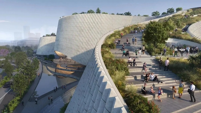 這座五層有機建筑受到公園樹木的啟發,設有畫廊、劇院和社區空間,周圍環繞著由 Studio-MLA 設計的 11 英畝花園,該建筑的預計完工日期已更新為 2026 年。