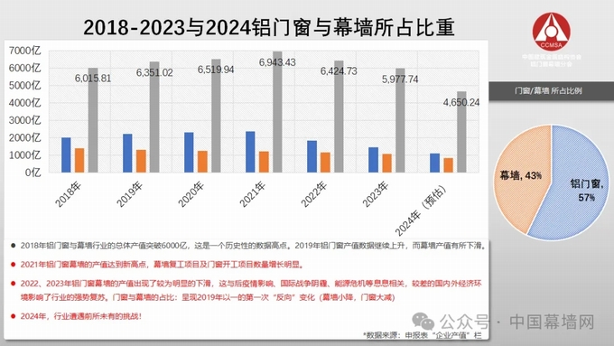 2024年的門窗幕墻行業面臨了前所未有的巨大挑戰!我們的統計主要來源于幕墻、門窗的工程類企業,在納入家裝門窗及各細分領域后,整個統計數據的面擴大了。由于在建筑外圍護結構體系中,綠色低碳要求的提高,建筑設計過程中,對采光和通風的功能有了一系列的調整和變化,相應的會在建筑立面適當增加門窗幕墻的面積,以及外墻裝飾、造型面板(詞條“面板”由行業大百科提供)的設計。