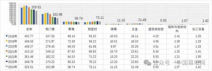 2018年-2024年鋁門窗幕墻產值分類匯總表