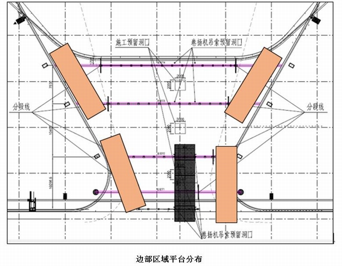 本方案大面預計使用3臺工作平臺,系統邊部使用改制不規則移動平臺。見下圖。