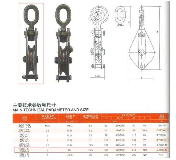 滑車:HQG1-32 額定載荷 5t,共計8個。