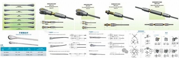 品類:鍍層鋼拉索、鍍層鋼拉桿、不銹鋼拉索、不銹鋼拉桿、錨具(詞條“錨具”由行業大百科提供)、夾具、壓桿等