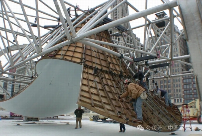 “芝加哥云門”:榮獲美國杰出焊接獎,是金屬板幕墻加工的極致項目之一。項目寬20m、高10m、深13m,中間拱口3.7m高,重110噸。由168塊9.5mm厚S316不銹鋼板的組成,完美焊接高度拋光,整體結果天衣無縫,從視覺上看不到任何接縫。