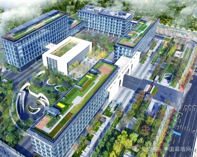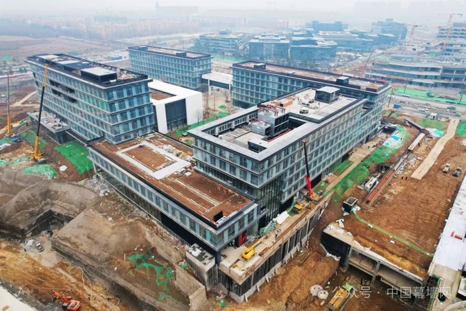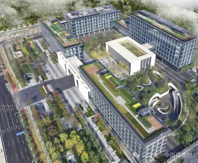 五棟“L形”主樓圍合向心,會議中心位居中央,園區(qū)東側(cè)設(shè)計(jì)有下沉庭院,擁有兩層地下車庫。主要幕墻系統(tǒng)包括:雙層呼吸式外循環(huán)玻璃幕墻,點(diǎn)式隱框玻璃幕墻統(tǒng), UHPC幕墻系統(tǒng),鋁板幕墻系統(tǒng),半透明數(shù)碼彩釉玻璃幕墻系統(tǒng),陶土板幕墻系統(tǒng),鋁板(詞條“鋁板”由行業(yè)大百科提供)雨篷系統(tǒng),格柵吊頂、玻璃欄桿等多個(gè)幕墻系統(tǒng)。