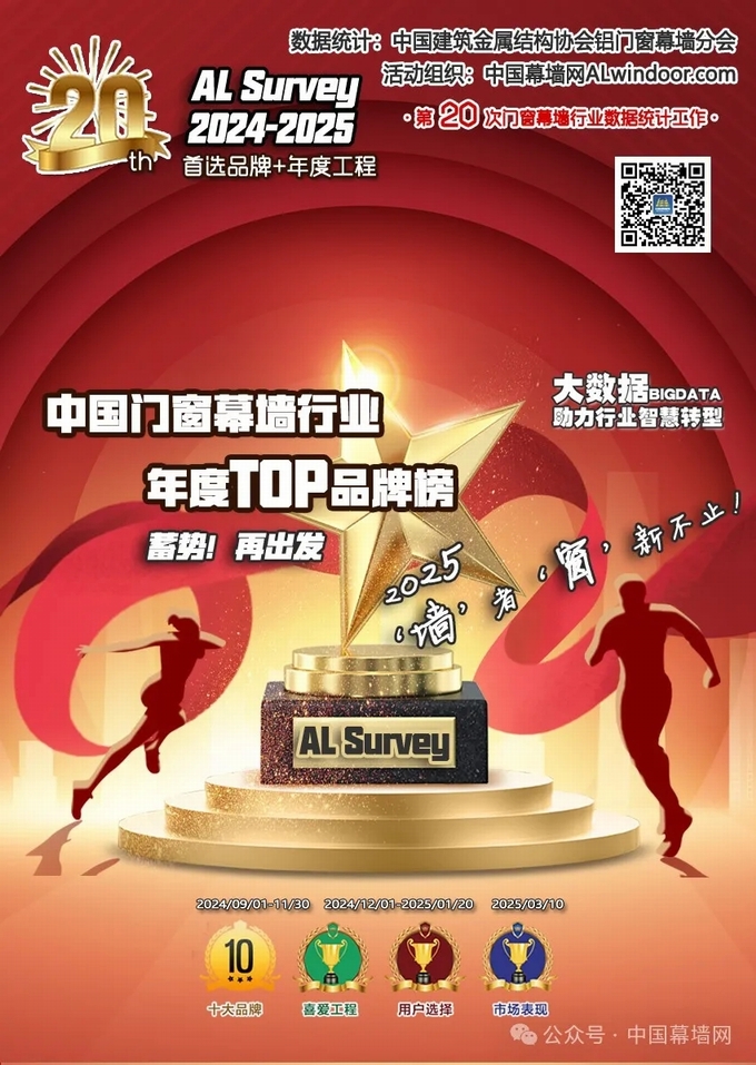 AL-Survey是由中國建筑金屬結(jié)構(gòu)協(xié)會鋁門窗幕墻分會提供數(shù)據(jù)統(tǒng)計(jì)支撐,中國幕墻網(wǎng)ALwindoor.com主辦的門窗幕墻行業(yè)年度“工程+門窗+材料”品牌饕餮盛宴。