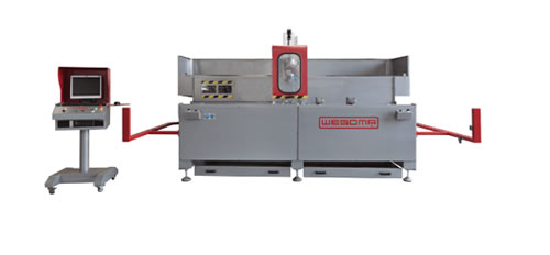 ◆大型工作臺、大走刀行程。一次可加工6至10根型材 ◆位置可調整的多片刀具,使得更換產品時不必更換刀具,從而節約生產準備周期和刀具費用 ◆根據不同的型材,多組刀可以同時工作也可以單獨工作 ◆更大的刀具直徑,使加工面質量更好 ◆液壓阻尼氣缸推動刀具進給,工作更平穩 ◆加厚的型材壓板,防止型材變形