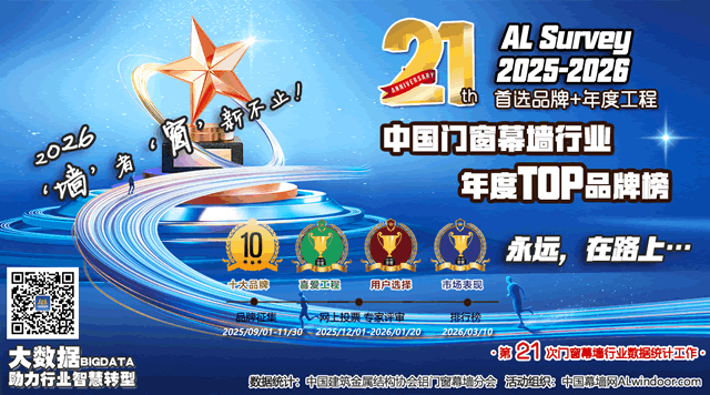 系統(tǒng)重塑、迭代升級、TOP引領|打造全產(chǎn)業(yè)鏈體系,為高質(zhì)量發(fā)展賦能,本屆活動于2025年9月,以“門窗幕墻行業(yè)數(shù)據(jù)申報工作”的形式,進行品牌的入圍征集。在入圍品牌名單公示完成后,將于2025年12月正式啟動網(wǎng)上投票和專家評審,直到次年的1月20日結束,而排行榜單公布及頒獎典禮,將在2026年3月10日的廣州年會上舉行。