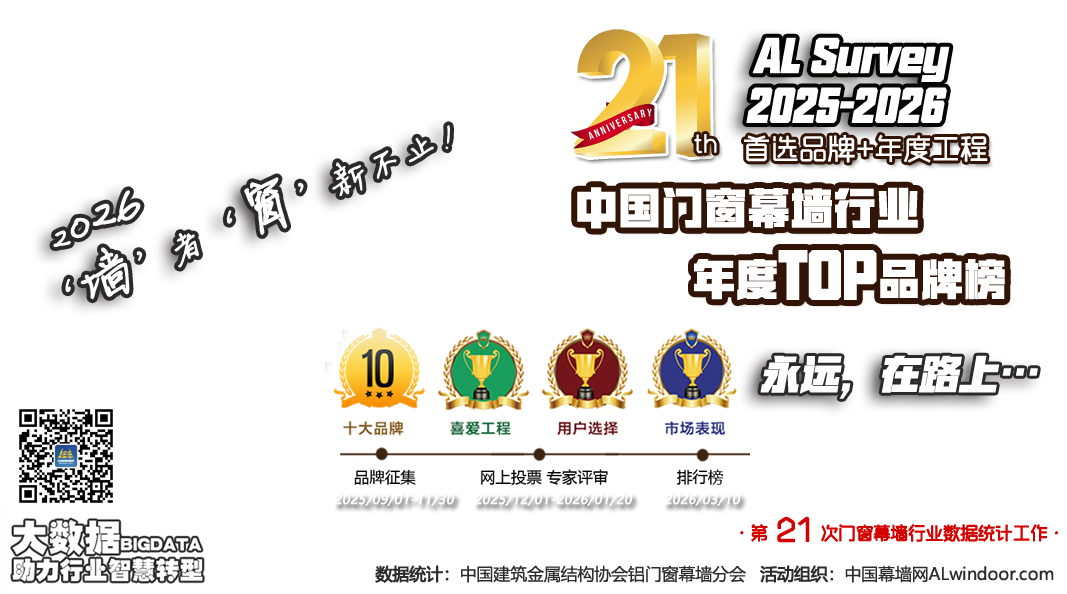 TOP 品牌,理想與成就,熱愛與責任,創(chuàng)造與發(fā)展|門窗幕墻行業(yè)年度大型讀者調(diào)查暨“我最喜愛幕墻工程”評選活動(簡稱:AL-Survey),創(chuàng)始于2005年,是由中國建筑金屬結構協(xié)會鋁門窗幕墻分會提供數(shù)據(jù)支撐,中國幕墻網(wǎng)ALwindoor.com組織開展,通過與二十多家合作媒體的強強聯(lián)手,攜手200多家入圍企業(yè),所共同呈獻出的一場品牌饕餮盛宴。