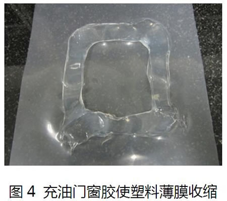怎樣才能快速鑒別門窗膠有沒有“充油”呢?白云化工專家組在此給大家分享一個(gè)快速簡單的鑒別方法。把門窗膠打在塑料薄膜上,待門窗膠固化一段時(shí)間后,填充了礦物油的密封膠會(huì)使塑料薄膜紙上收縮;如密封膠填充的礦物油的量越大,塑料薄膜出現(xiàn)收縮的時(shí)間會(huì)越短,且收縮現(xiàn)象也越明顯。