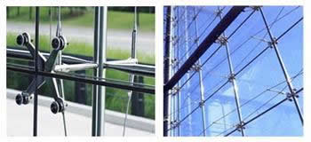 由玻璃面板、點支承裝置和支承結構構成的玻璃幕墻。