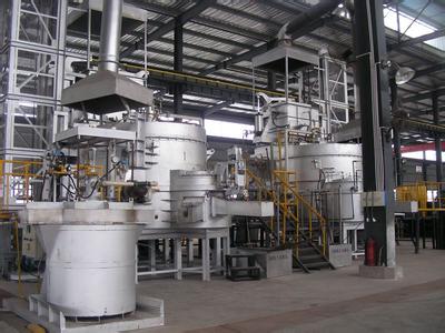鋁合金熔化爐的用途 鋁合金中熔化爐是根據鋁熔煉工藝而開發的一種新型高效節能熔鋁爐,主要用于鋁錠的熔化與保溫,它能很好地滿足鋁熔煉的工藝。 結構形式及特征 該爐是由熔化爐、坩堝,加熱元件,爐蓋升降機構,電器自動控溫系統等組成。爐殼由型鋼及鋼板焊接成圓筒形。在爐體前端下部有一孔,供坩堝因腐蝕,氧化產生裂縫而形成漏滴情況下,可使坩堝內的熔液通過此孔流出爐體外,以使工作室爐膛不致受到損壞。 主要參數